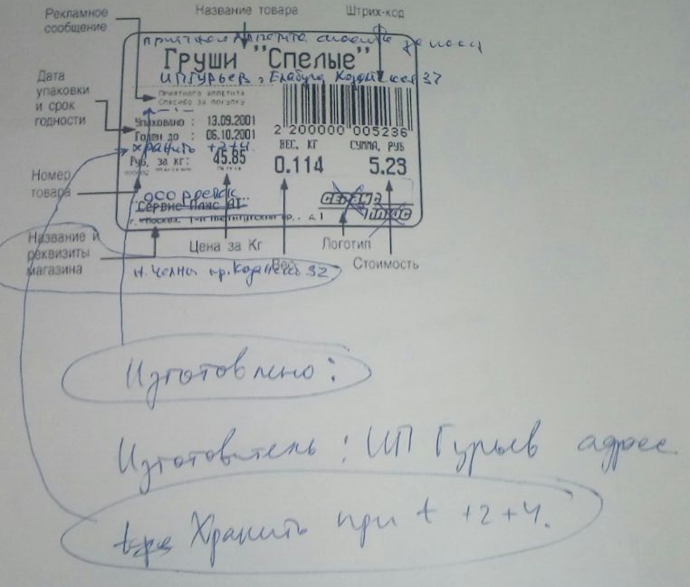 2) Для весов с принтером создать этикетку для весового товара, образец будет в фото.