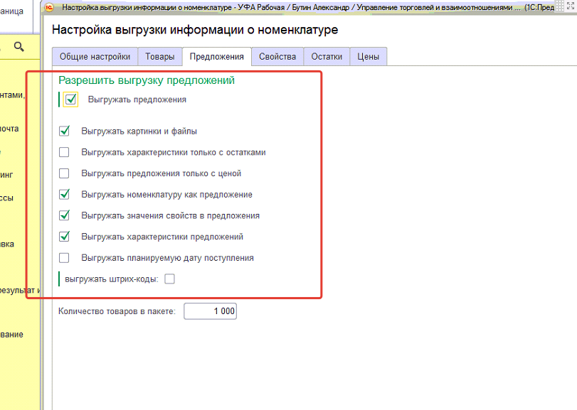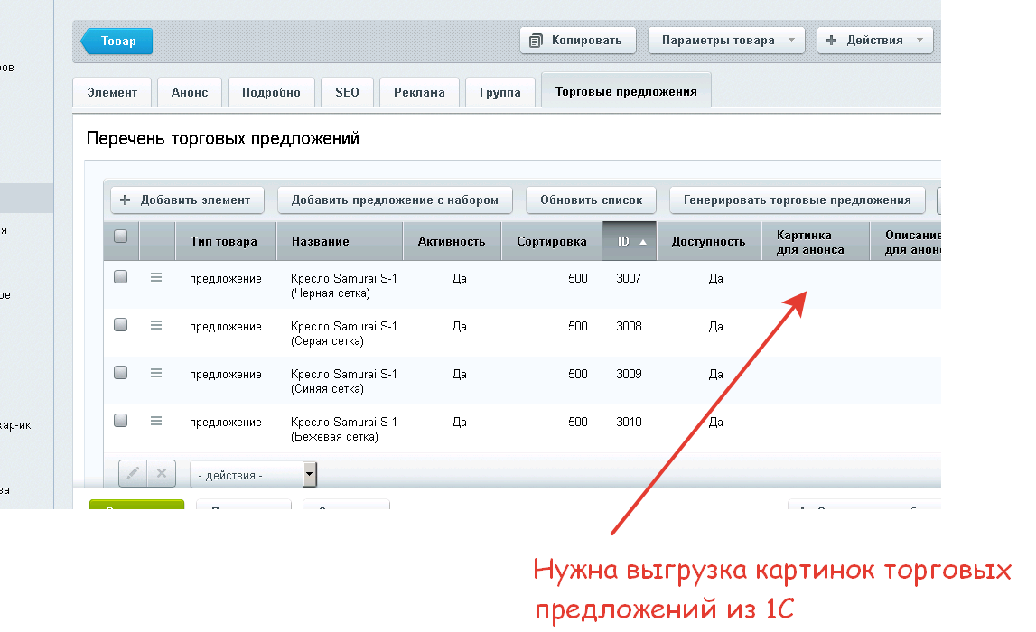 Организовать выгрузку картинок торговых предложений на сайт.