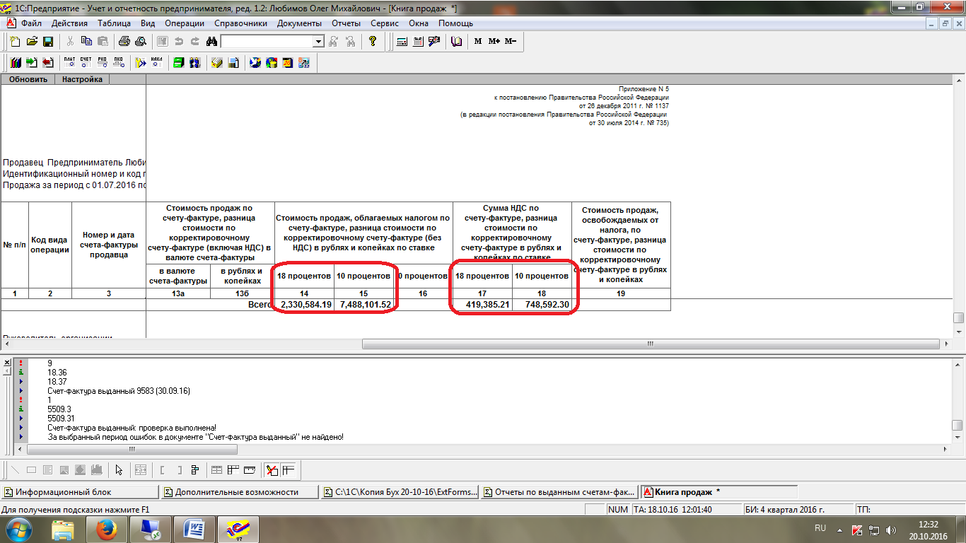 Учет предпринимателя 7.7. Найти ошибку в НДС при формировании книги продаж за 3 кв.