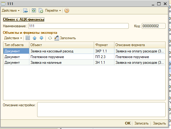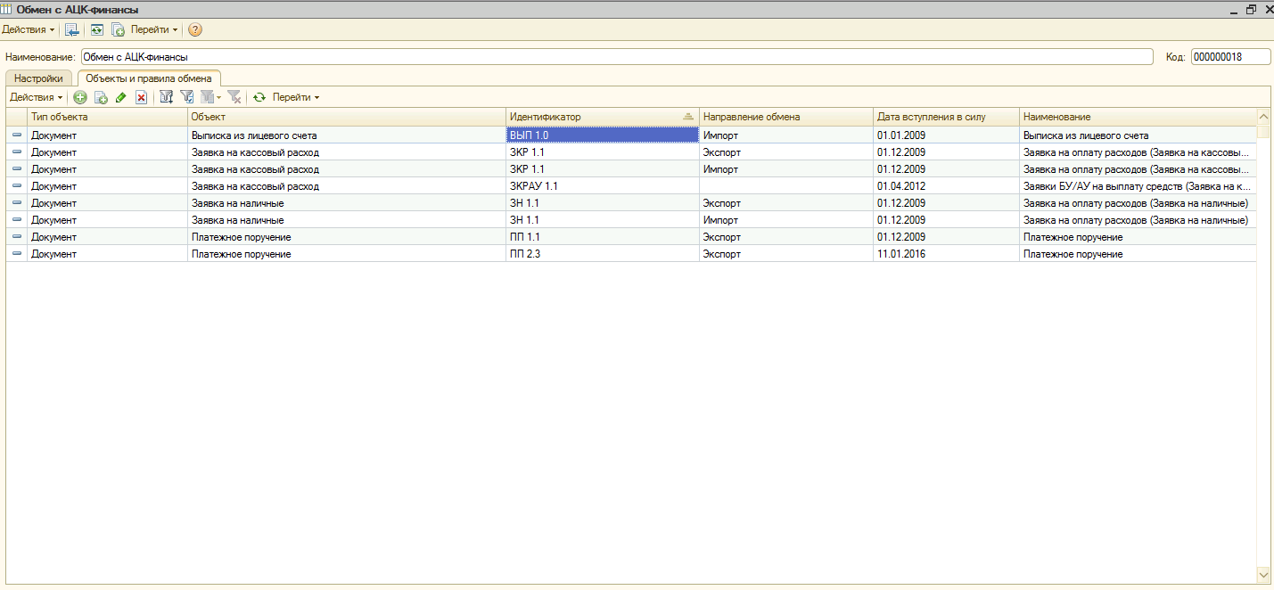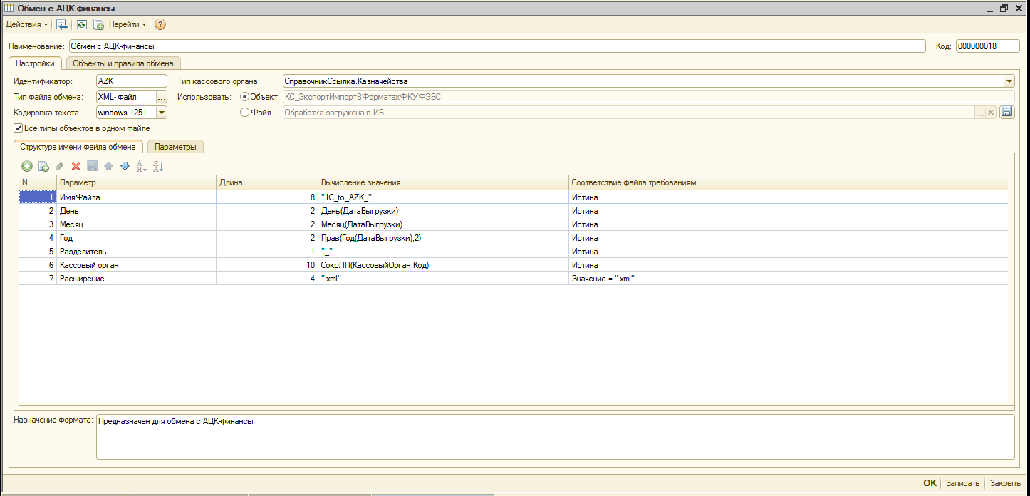 Требуется реализовать обработку(или настроить типовым методом) для выгрузки платежных поручений для АЦК-Финансы.