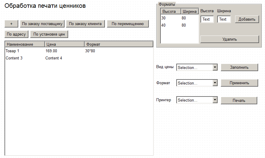 Требуется создать обработку для печати ценников с разными форматами.