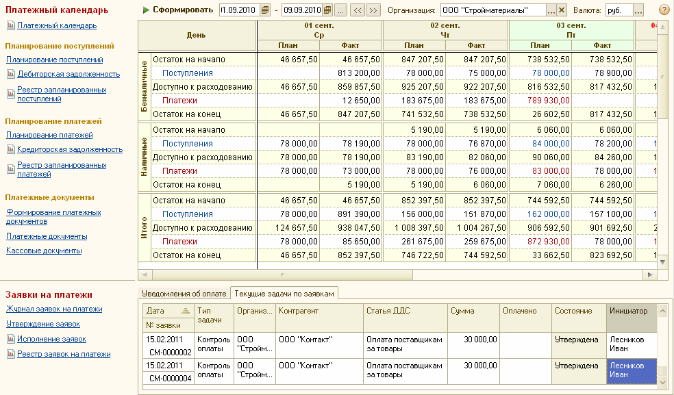 Возможность провалиться в поступления и списания план и факт по каждому дню, чтобы увидеть из каких документов складывается цифра