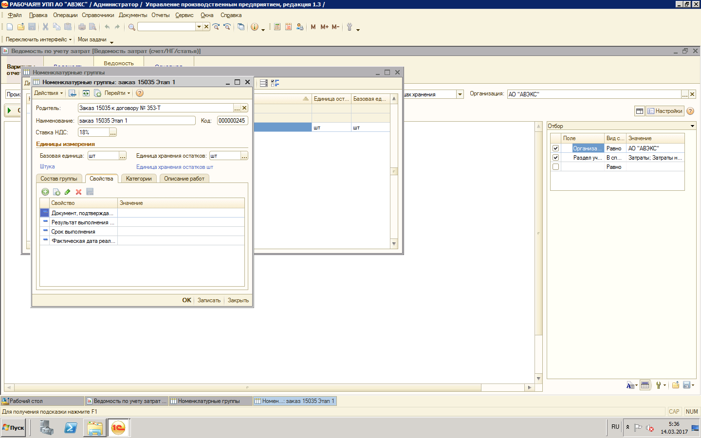УПП "Ведомоть по учету затрат" (отчет)