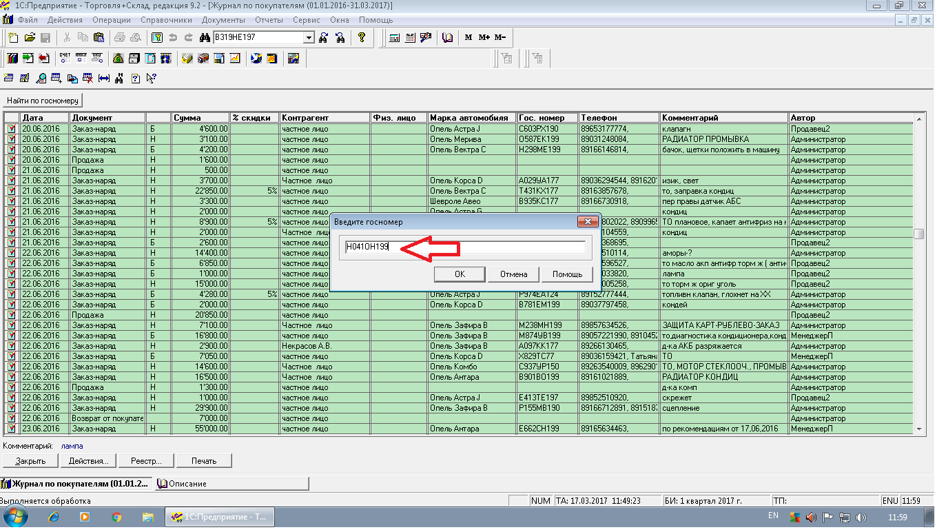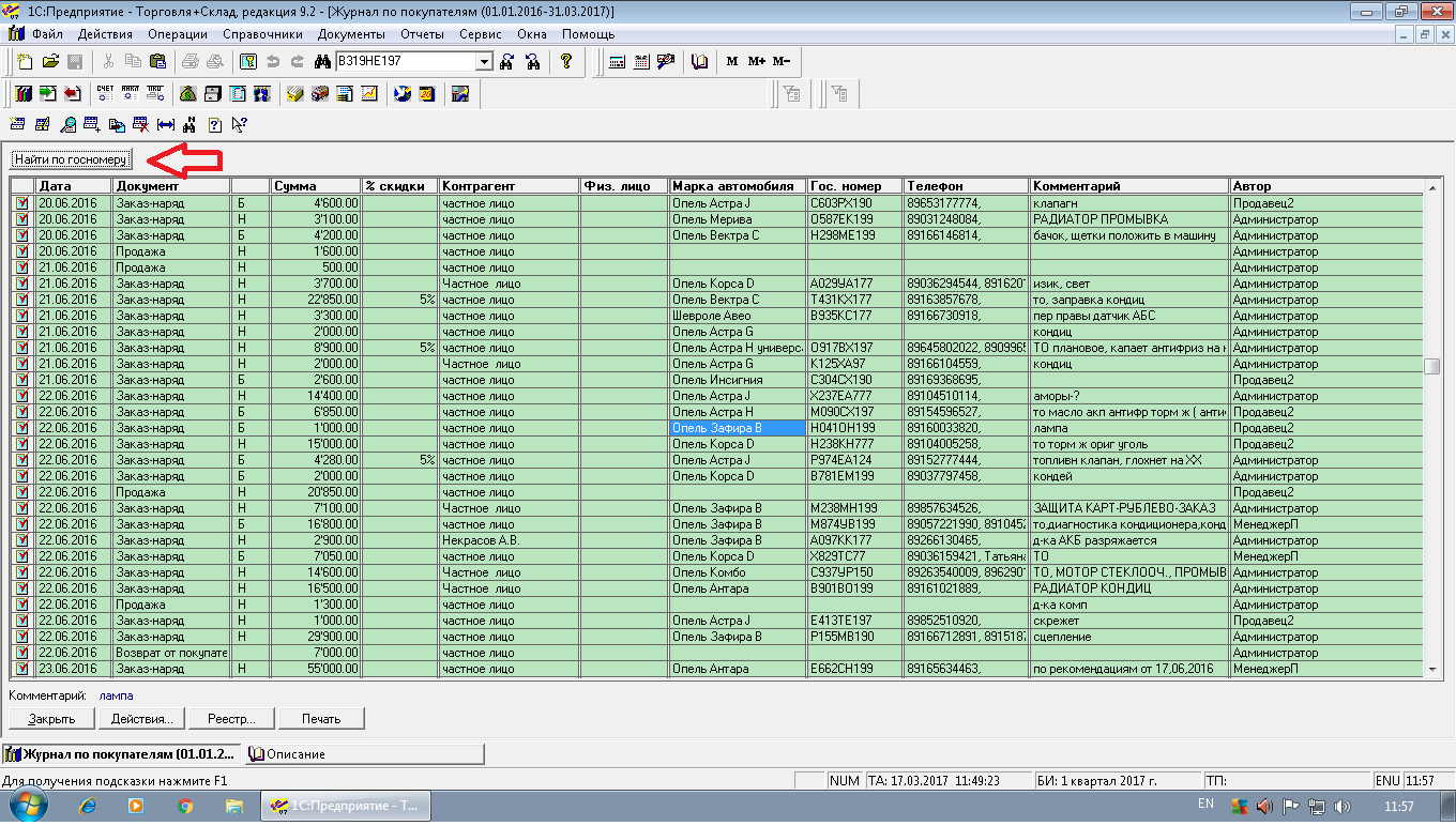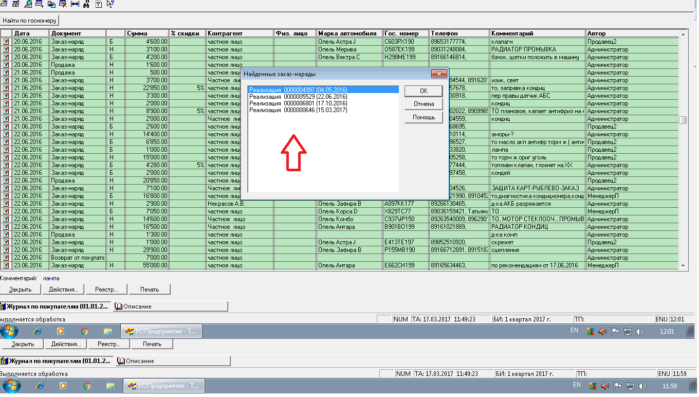 Нужно вместо пошагового поиска по общему журналу среди всех остальных заказов просто вывести окно с выводом только найденных по конкретному номеру автомобиля заказ нарядов. Можно в виде отдельного окна или в виде окна журнала только с выбранными позициями.