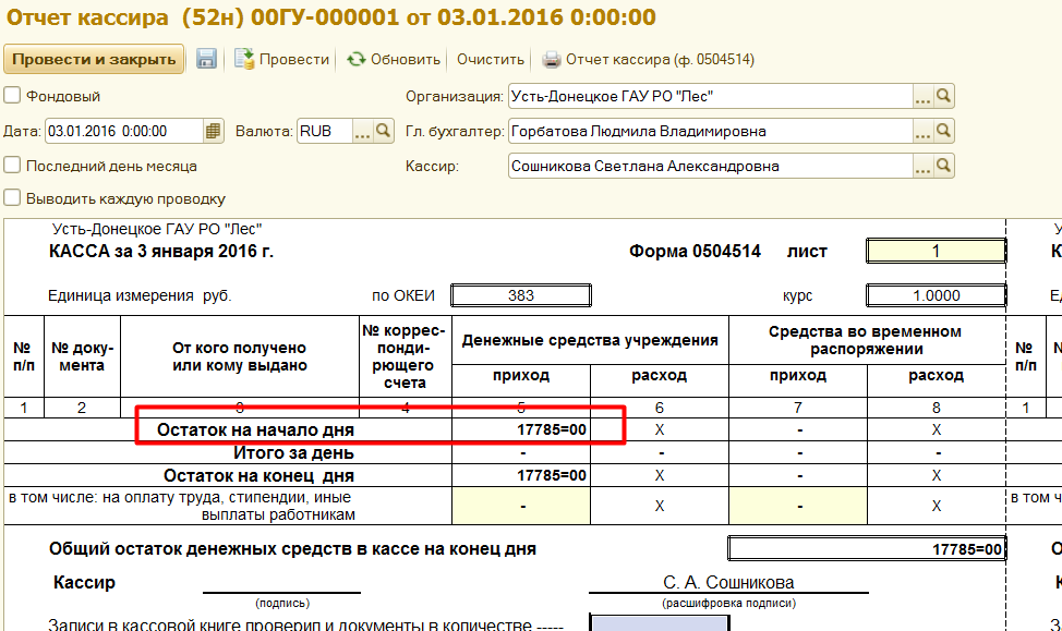 СВЕРНУТА БАЗА НА 31.12.2016Г. При формирование отчета кассира тянет в начальном сальдо остатки, с какого регистра не понятно. Необходимо проанализировать и найти, откуда тянет в отчет кассира суммы
