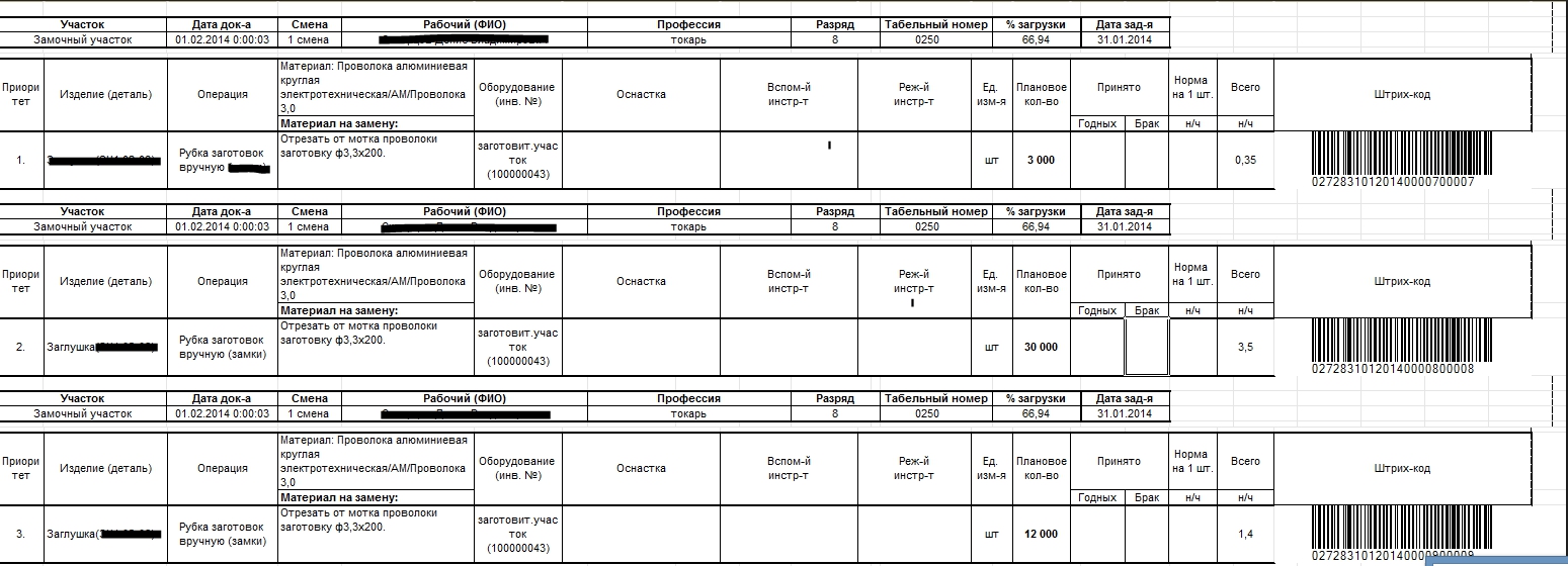 Так у нас посчитаны все изделия. Кг и минуты различаются.Нужно сделать поминутную тарификацию работ в цехе, чтобы в конце месяца это конвертировать в начисление ЗП. Условно говоря рабочий Иванов за смену сделал 20 столов. В конце смены сканером штрих-кода щелкнул по своей карточке и по штрихкоду выполненной работы, пошел домой. За месяц отшлифовано 112 штук или 45 кг дерева = ЗП 24120 руб. По каждому участку будет свой тариф.