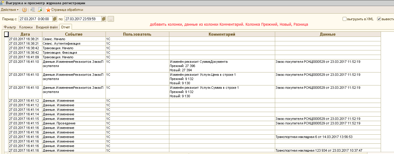 Доработка обработки Просмотр журнала регистрации 8.2