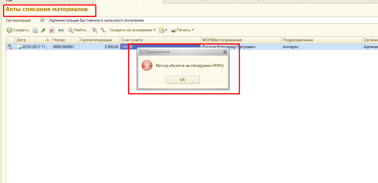 отредактировать печатную форму для документа АКТ СПИСАНИЯ в БГУ2