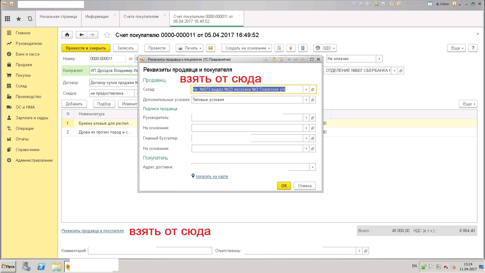 Добавить вывод склада в типовой договор