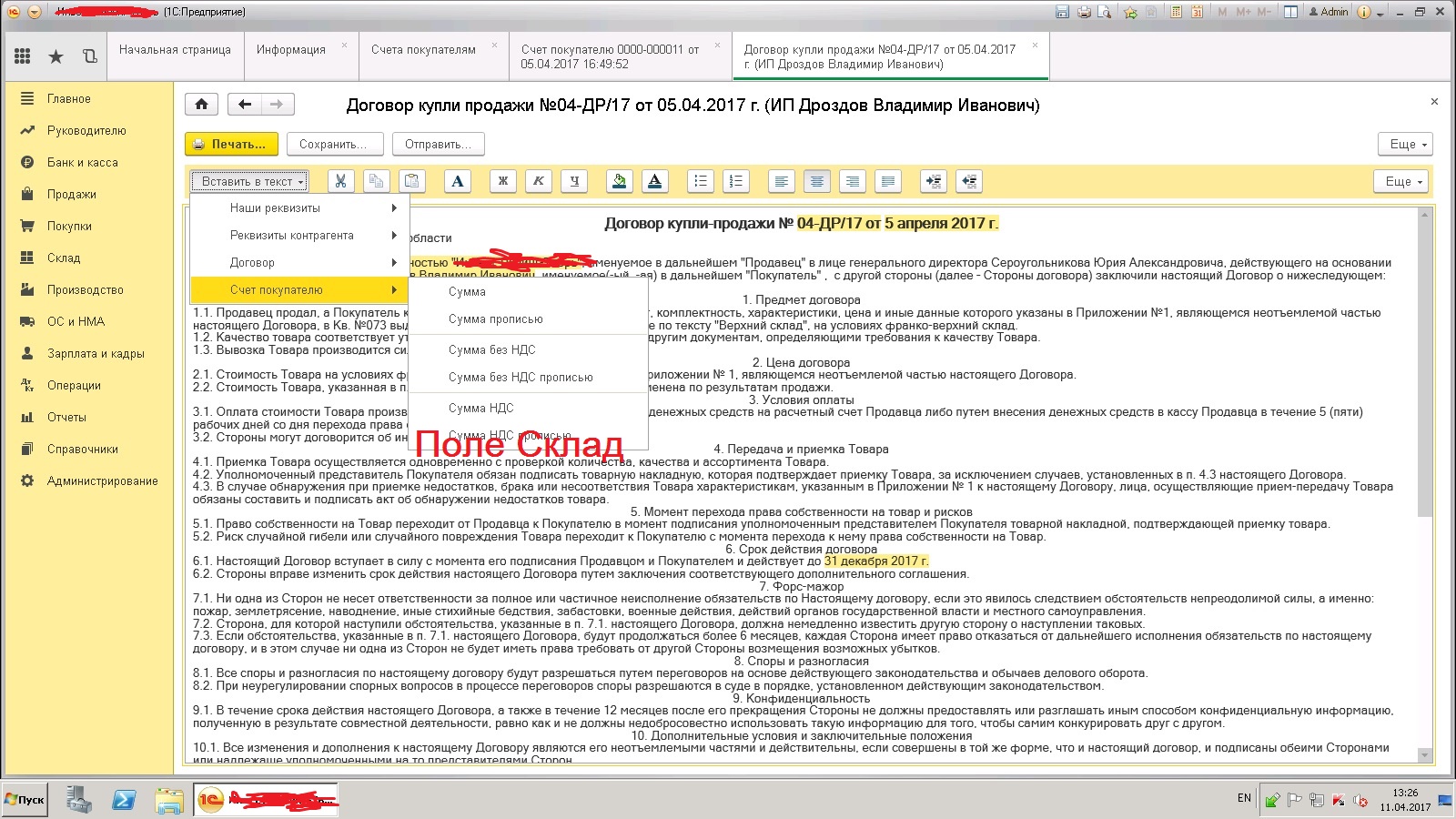 Доработка печатной формы договора в Бухгалтерии 3.0 вызываемый из документа счет на оплату