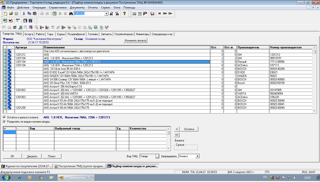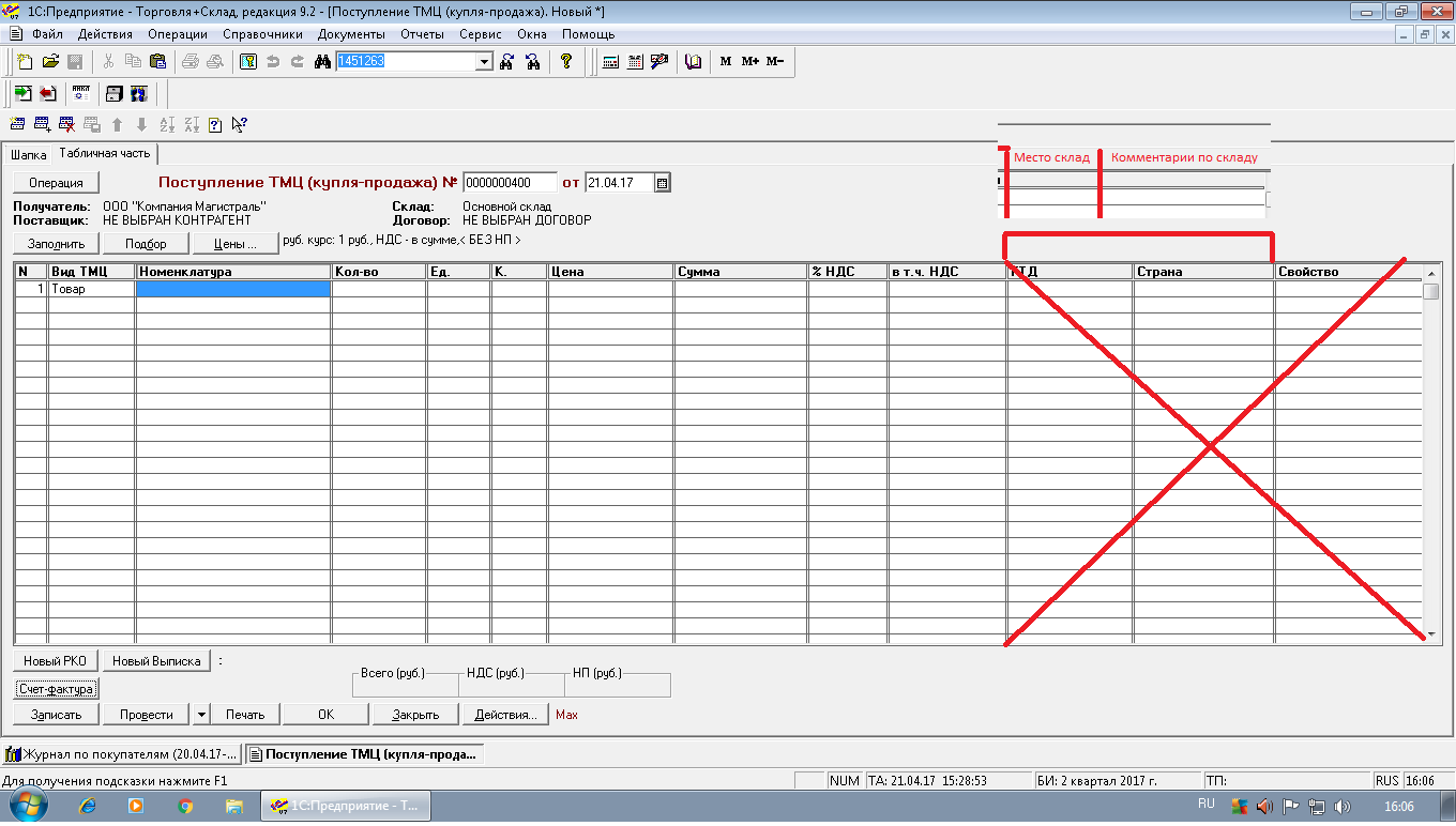 В таблице «Поступление ТМЦ(купля-продажа)» вместо колонок начиная с «ГТД» и до «Свойство»(можно сделать невидимыми) сделать только «Место склад» и «Комментарии по складу» см рис 2. Переходим к подбору номенклатуры (см. рис 3). После колонки номер производителя добавить те же 2 колонки «Место склад» и «Комментарии по складу»,причем по тому же принципу ширины колонок, что и в начале описывал.