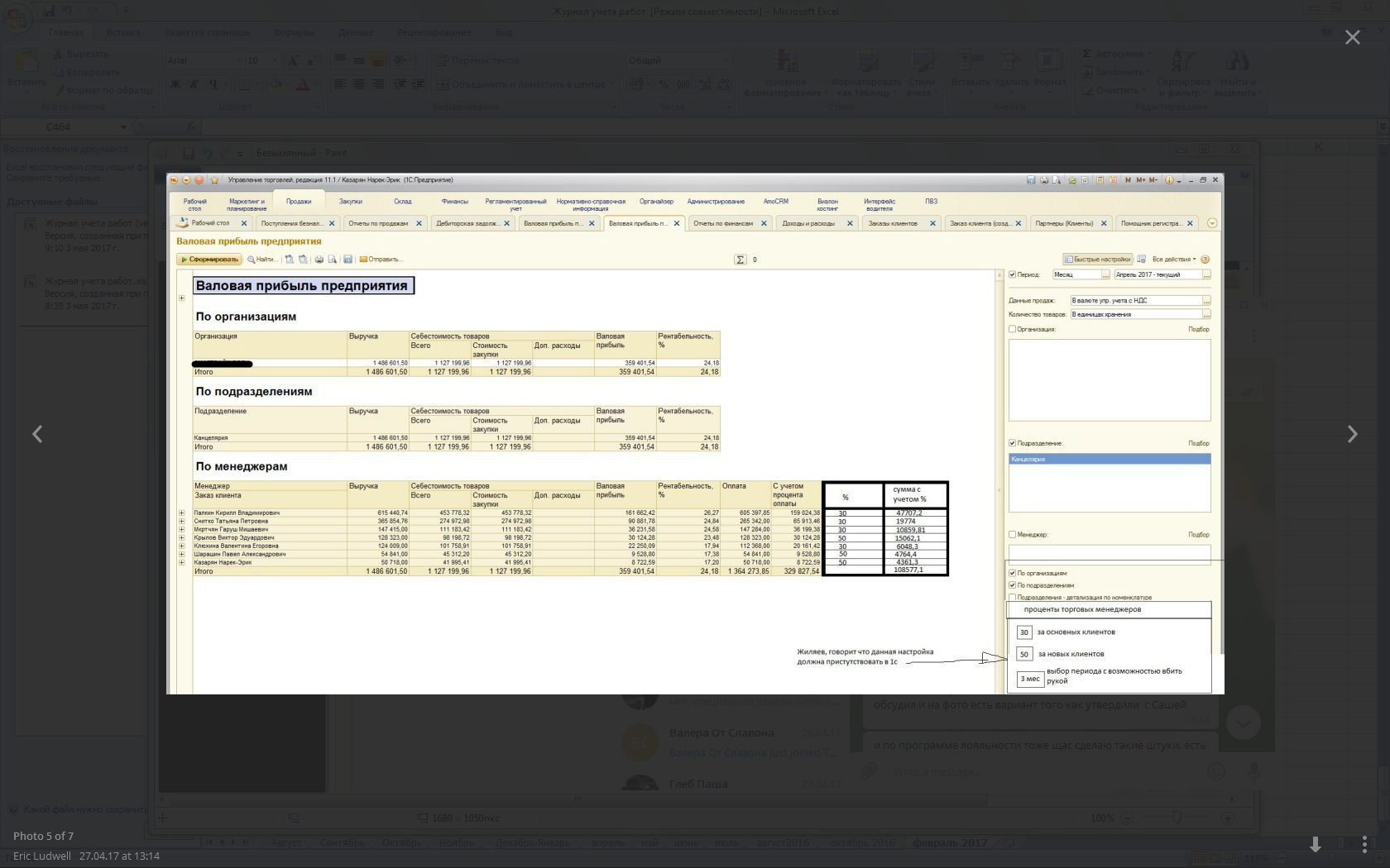 1.Добавить две колонки (% менеджера и Сумма с учетом %) считается от колонки "с учетом процента оплаты"