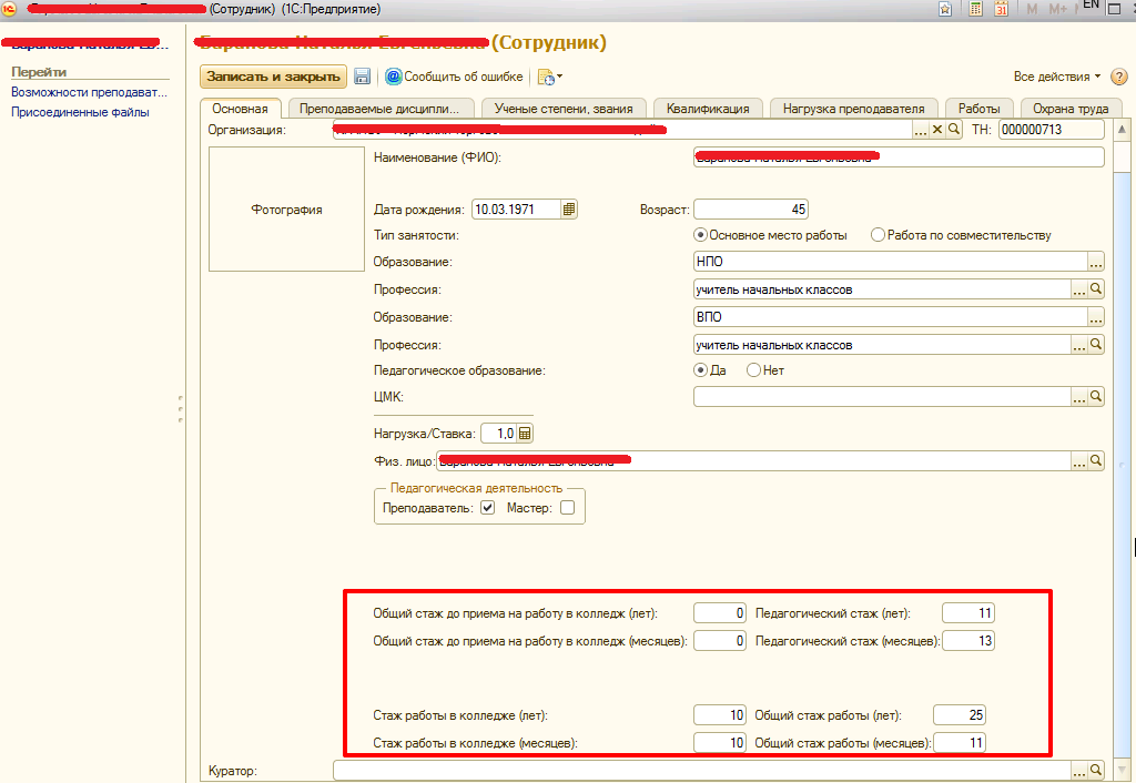 2) Добавить поля расчета актуального стажа, который рассчитывается при открытии карточки сотрудника.
