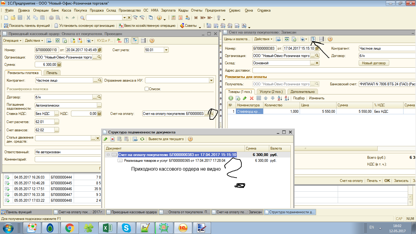 2. В структуре подчиненности не отображаются приходные кассовые ордера по счету - картинка 2