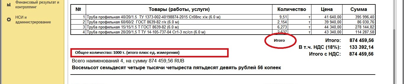В печатной форме (доп. печатная форма) нужно чтобы выводило Итого по колонке количество + строка с общим количеством после таблицы (как на скриншоте)