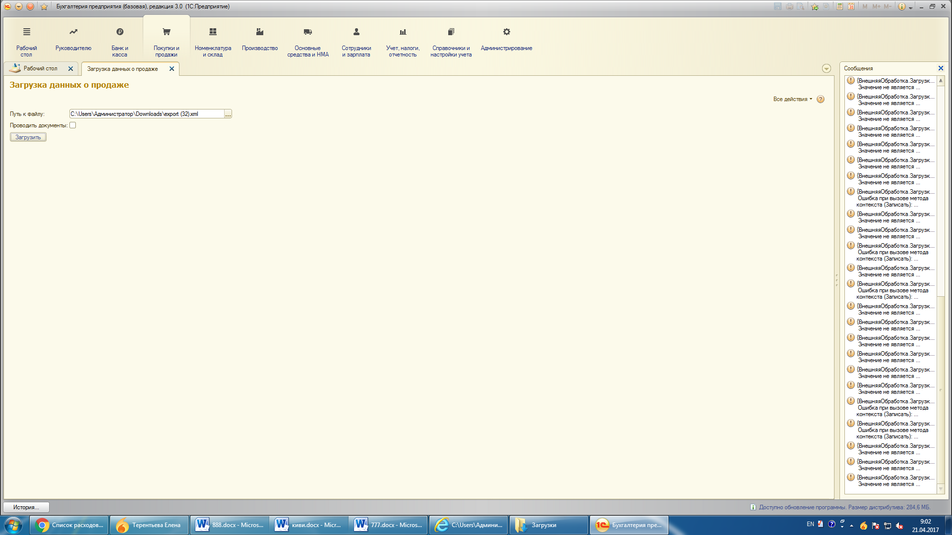 Исправить ошибки при загрузке файла XML в 1С