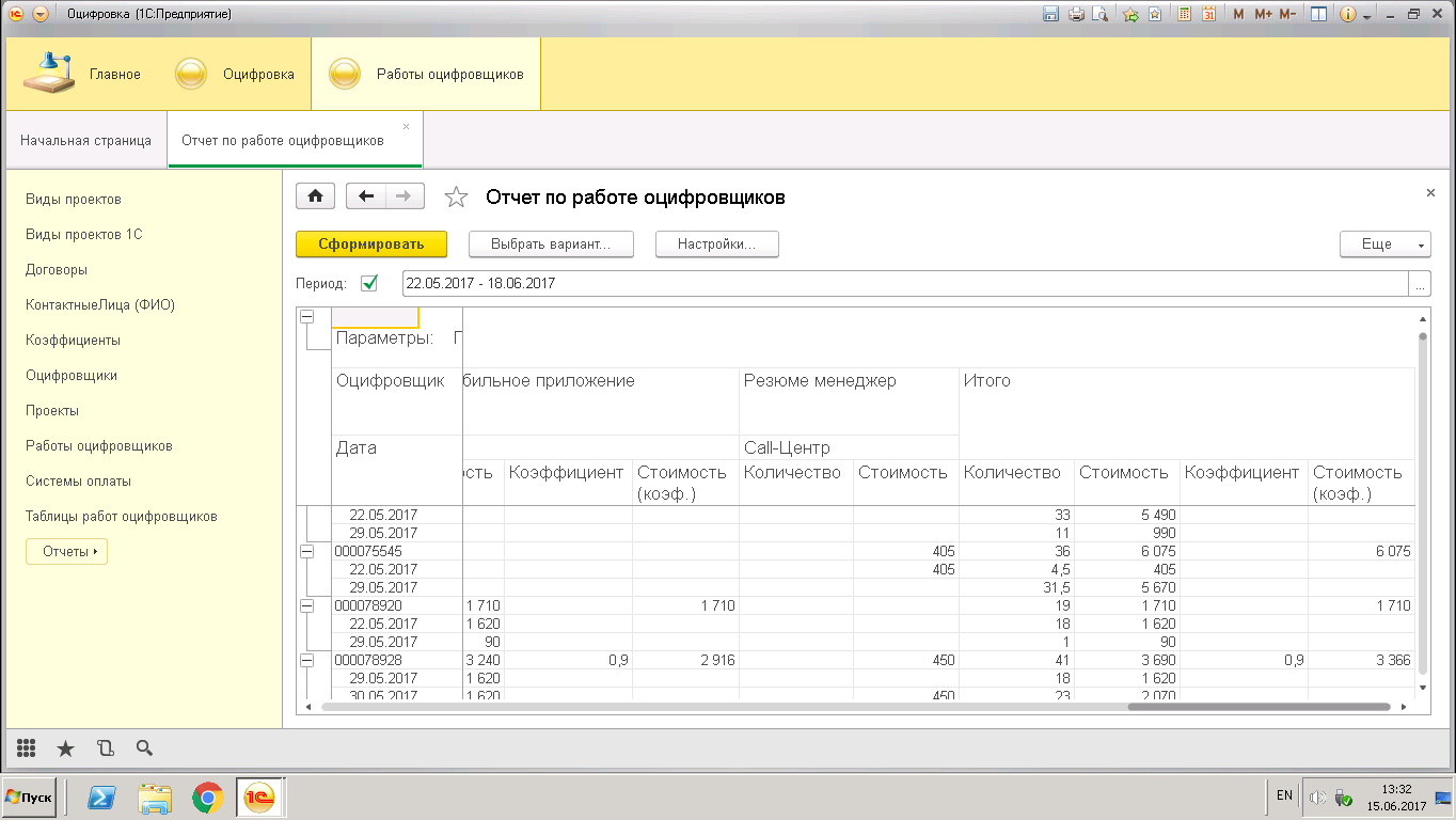 Есть отчет. Формируется по строкам и колонкам.