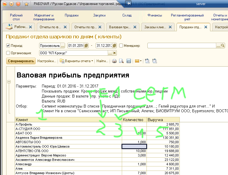 Необходимо доработать штатный отчет Валовая прибыль предприятия