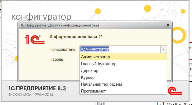 2. Из сотрудников сделать разделение по ролям: Директор, курьерская служба, тех. поддержка, главный бухгалтер. Установить для этих групп пароль для входа в базу.