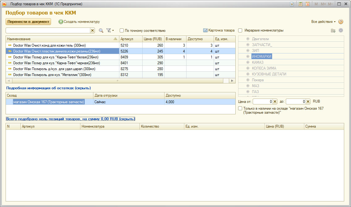 Нужно организовать возможность получения информации о наличии товара в магазинах продавцом с правами продавца-кассира.