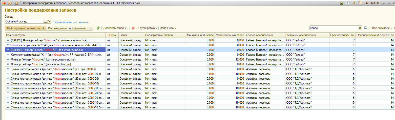 Требуется доработать отчёт, чтобы выводился товар по который не включен в документ "настройка поддержания запасов" или введенный максимальный остаток поддержания запаса равен "0". Два этих условия должны иметь возможность включения и выключения