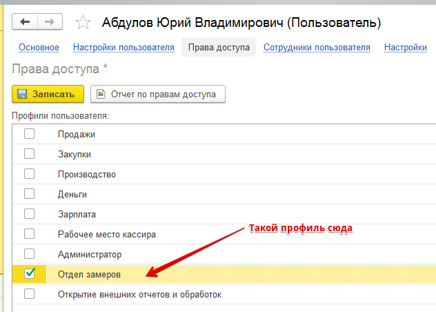 3. Профиль назначается пользователям, которые будут работать с указанными документами.