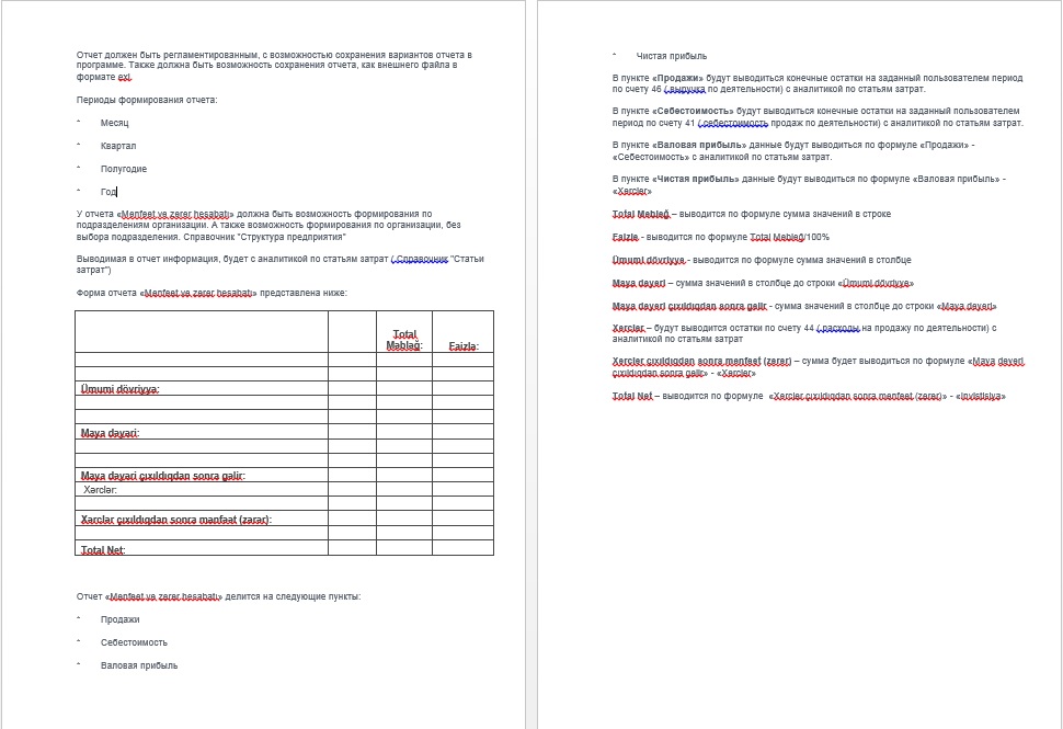 Форма отчета «Mənfəət və zərər hesabatı» будет предоставлена в екзель формате
