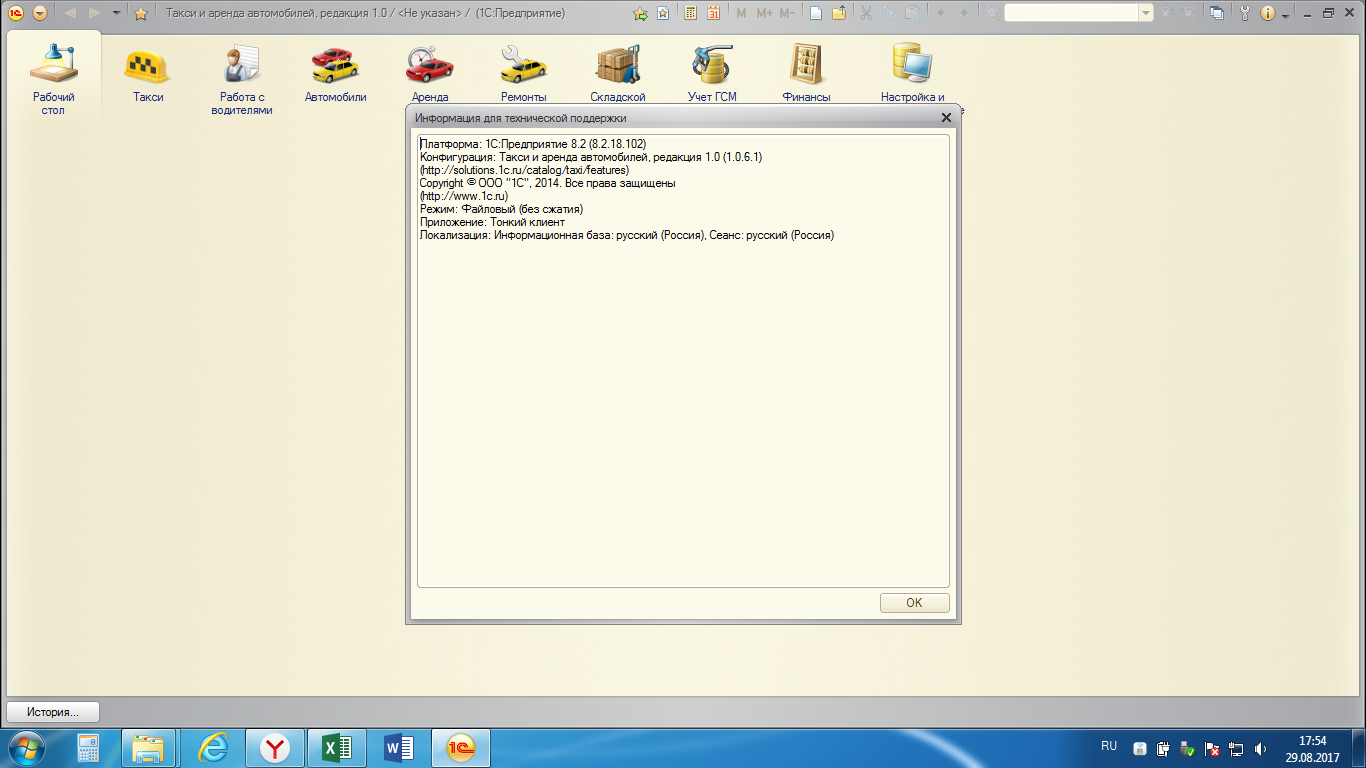 Настройка 1С 8.2 "Такси и аренда автомобилей, редакция 1.0"