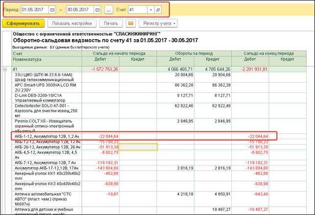 Если сформировать ОСВ за май 2017 года – то будут минусы: