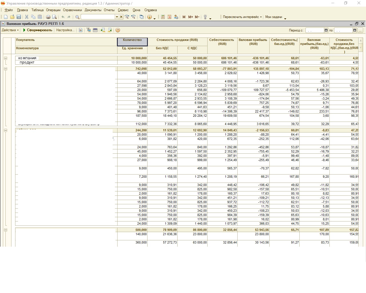 В УПП 1.3.92 необходимо в отчете с инфостарта Валовая прибыль Рауз регл. доделать раскладку себестоимости каждой продукции по спецификациям