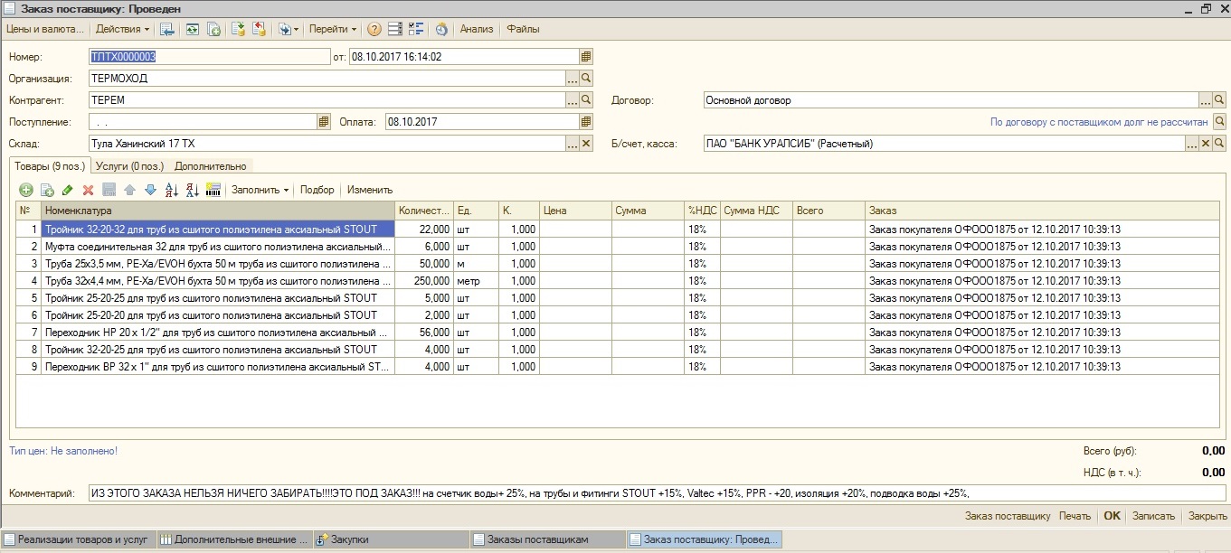 2) Некоторые позиции попадают в колонку "Заказ покупателя" вместо "Заказа поставщику (рис. 1, 2)