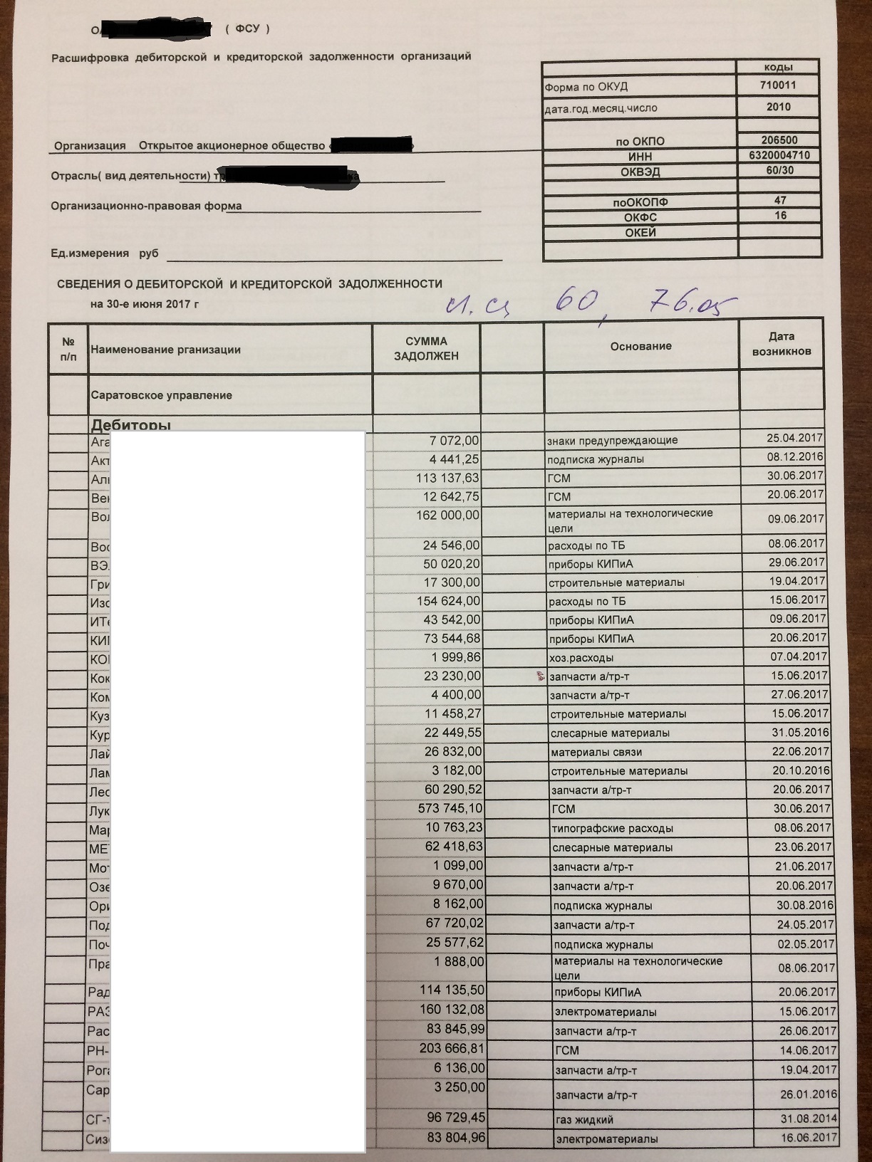 Информацию о задолженностях брать ТОЛЬКО со счетов: 60.01, 60.02 и 76.05