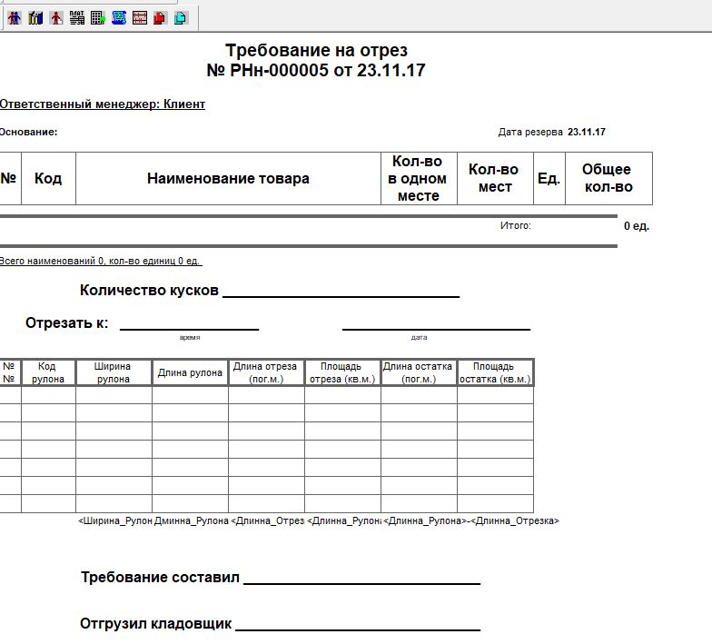 База склада. Необходимо создать новый документ (название Требование на отрез ), в котором будут происходить сдедующее: