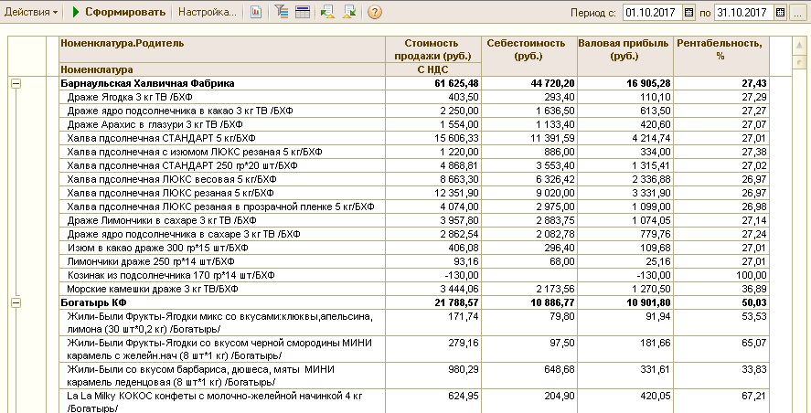 Разработка отчета по рентабельности номенклатуры для УТ 10.3
