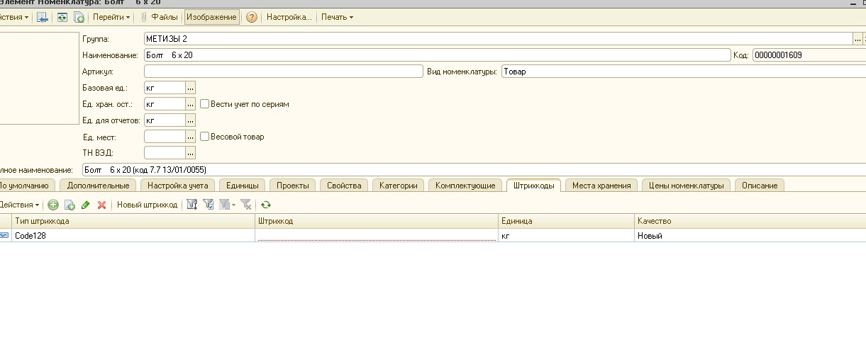 Присвоение штрихкода списком номенклатуре