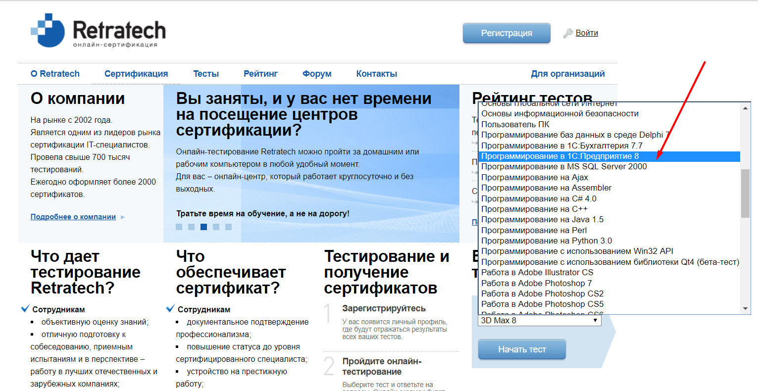 http://certifications.ru в тестах выбрать Программирование в 1С Предприятии 8