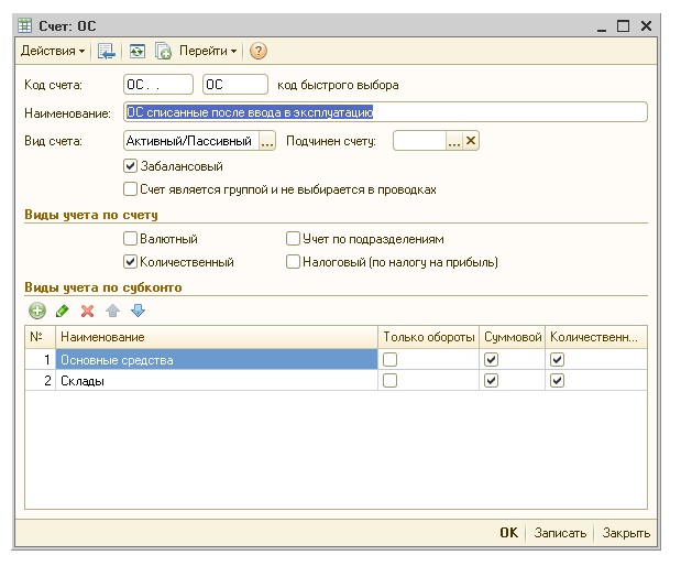 2) Добавить с аналогичным функционалом документ "Списание ОС забаланс".