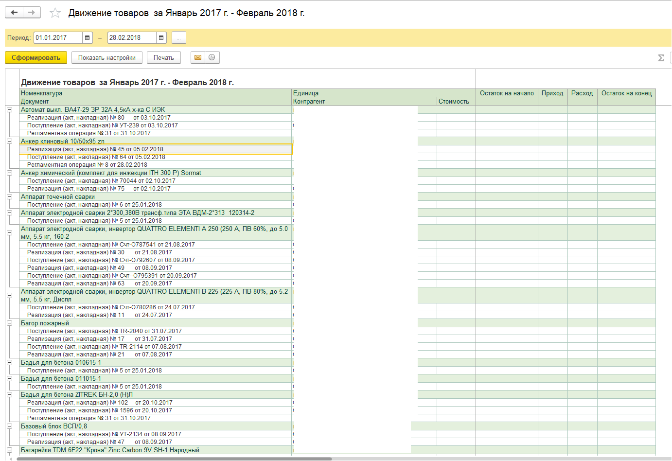 1.Доработать отчет Движение товаров