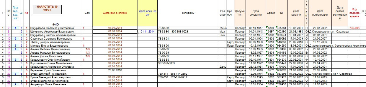 1. Жильцы с паспортными данными