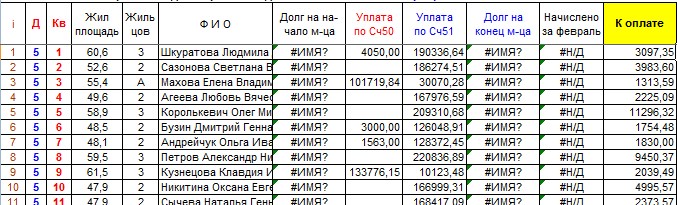 3. Сальдо по взаиморасчетам с жильцами (долги по оплате)