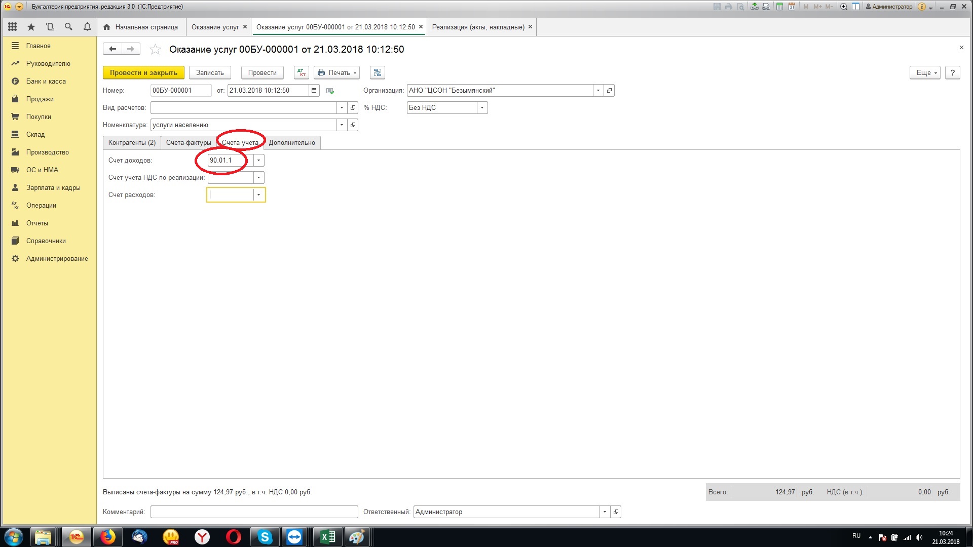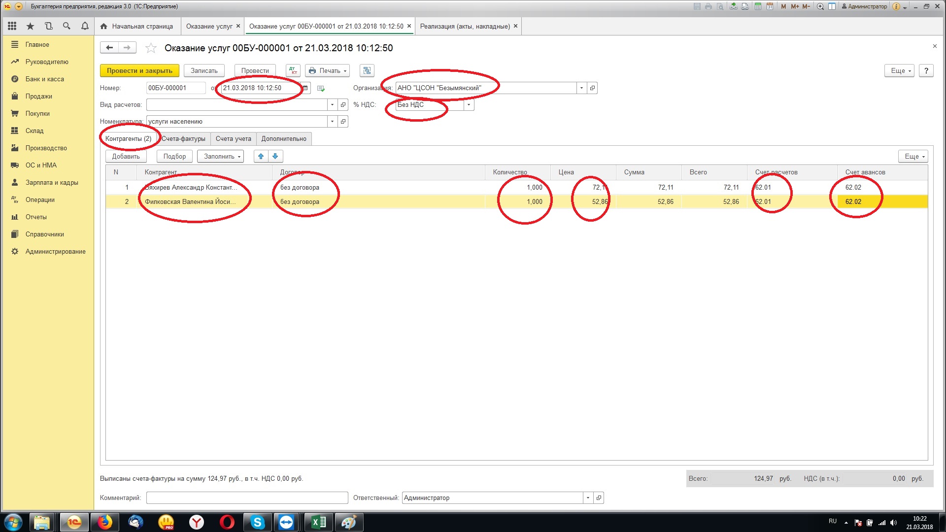2. Из Xls будем грузить в документы «Оказание услуг»