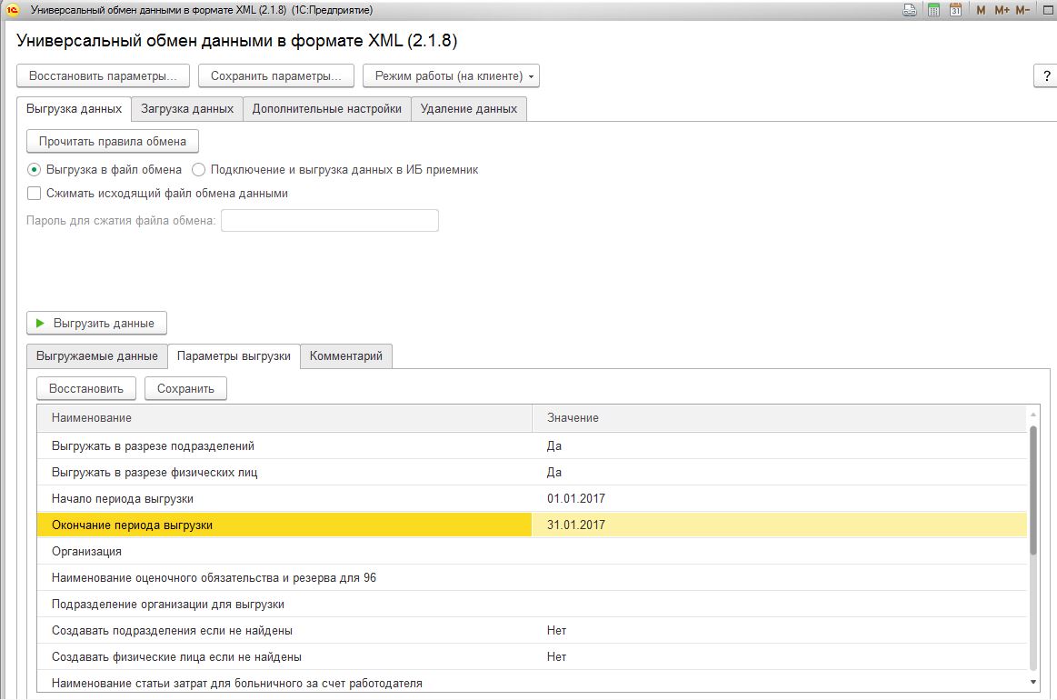 Что надо: либо научить как сделать так, чтобы параметры сохранялись, либо сделать обработку, на форму которой вынести все параметры, пользователь открывает обработку, заполняет параметры, выбирает файл правил, файл данных, нажимает выгрузить и у него сразу выгружаются данные или открывается окно универсальной обработки с уже заполненными параметрами. Надеюсь, вы поняли, что нужно.