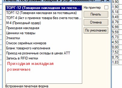 Прайс с Розничными ценами из Документа Поступление товаров и услуг