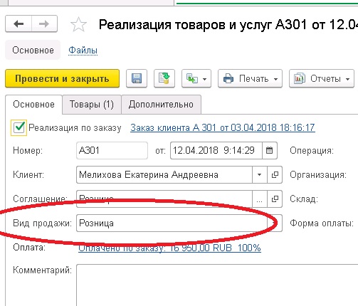 Нужно, чтобы пользователи из этого регистра могли видеть документы "Реализация товаров и услуг" (Продажа- документы продажи (все)) только с реквизитом "Вид продажи" = "розница".