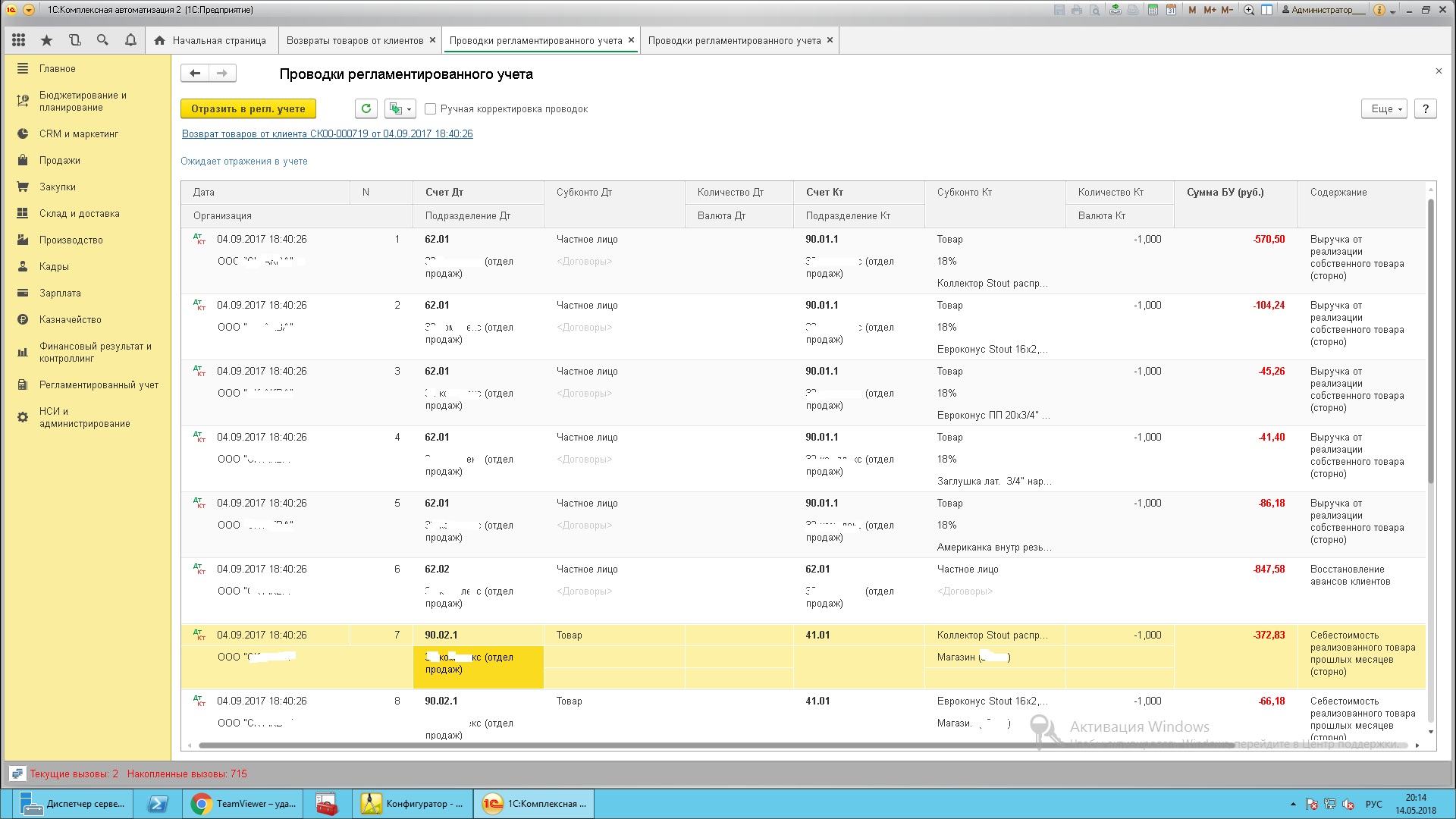 Решено! КА 2. Документ Возврат товаров от покупателя. не формирует проводки Дт90/Кт41
