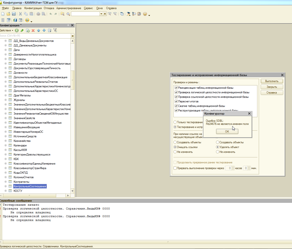 При тестировании ошибка - При тестировании и исправлении ошибок выдало сообщение "ошибка sdbl/ Fld24676 не является именем поля".