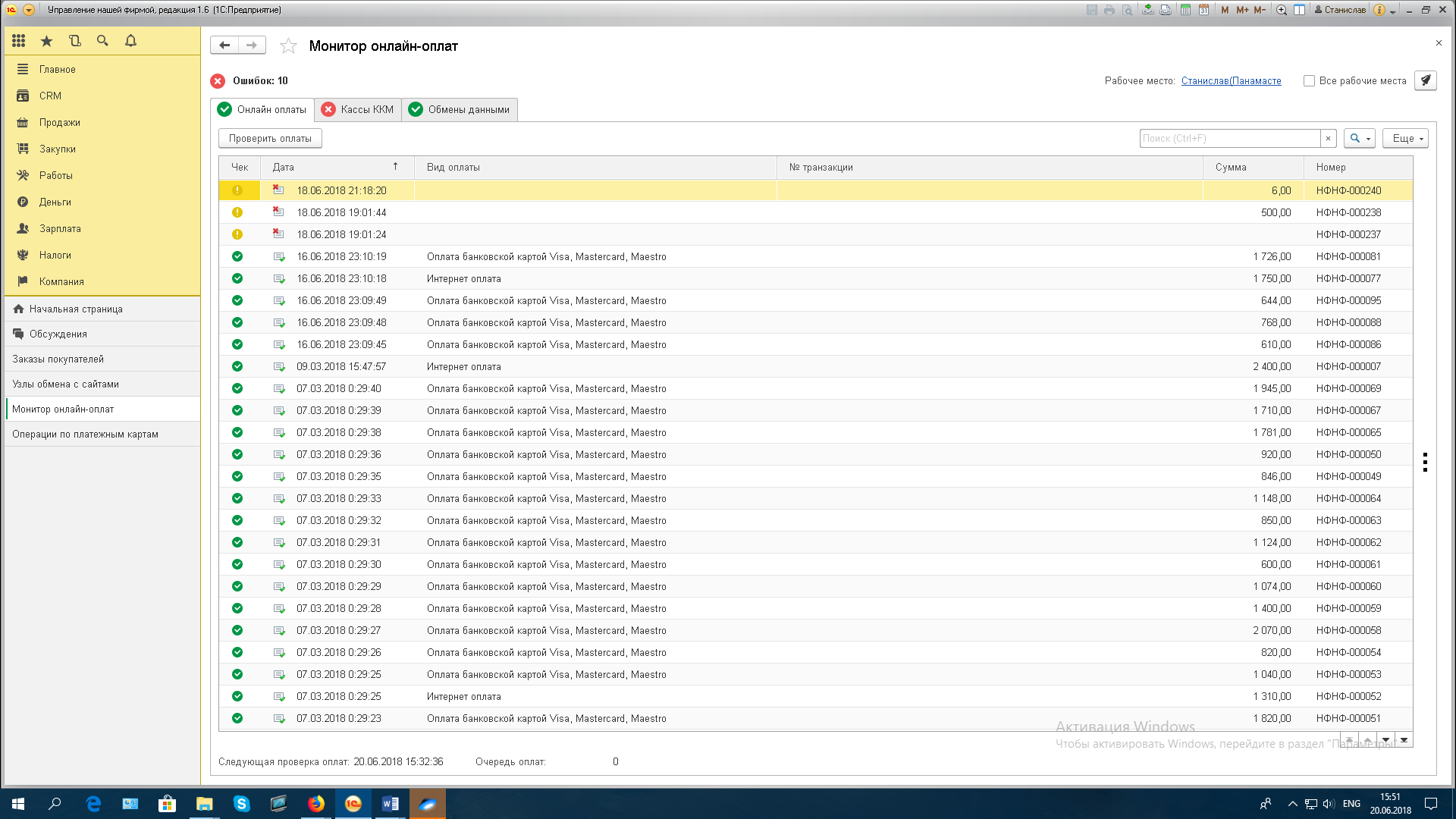 Проблема: при загрузке оплаченных заказов с сайта в 1С должен создаваться документ "Заказ клиента" и документ оплаты от клиента. Но сейчас создаются только документы "Заказ клиента", а документы оплаты по этим заказам не создаются. И пользователю приходится оплаты по заказам создавать вручную.