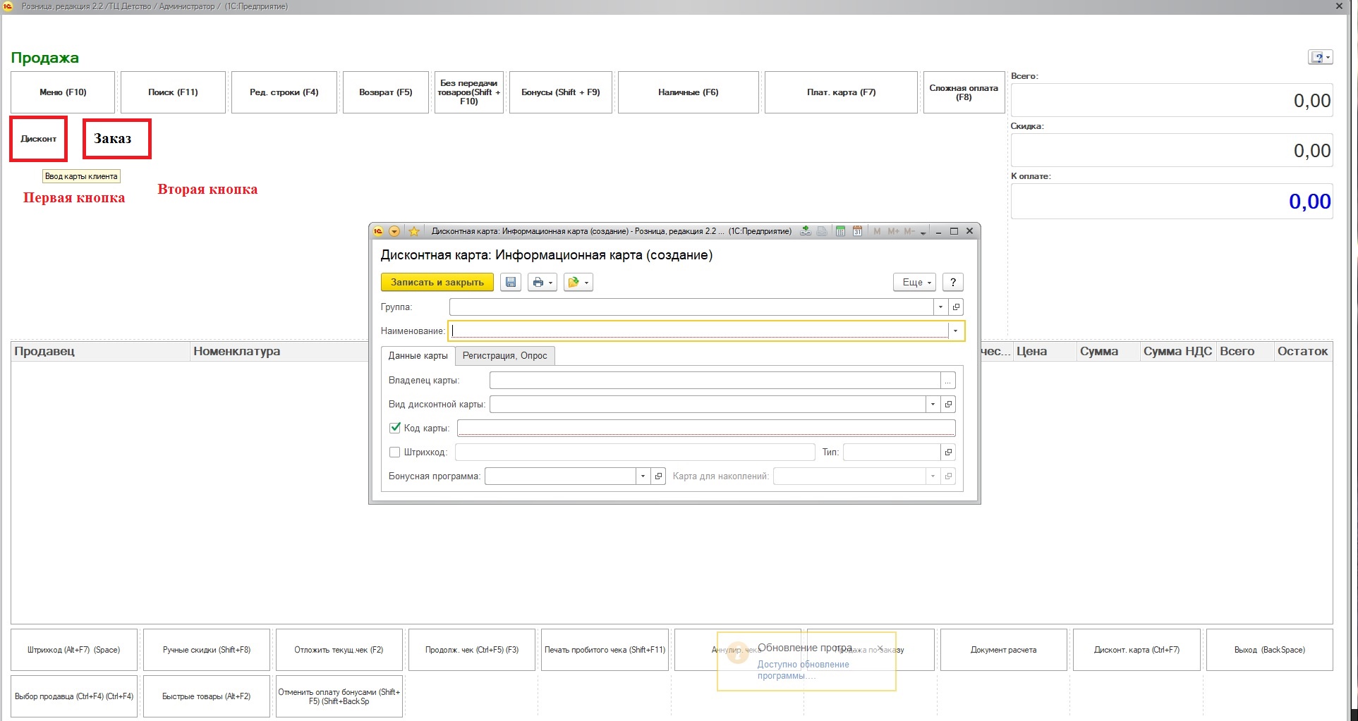 Первая создает Новую дисконтную карту