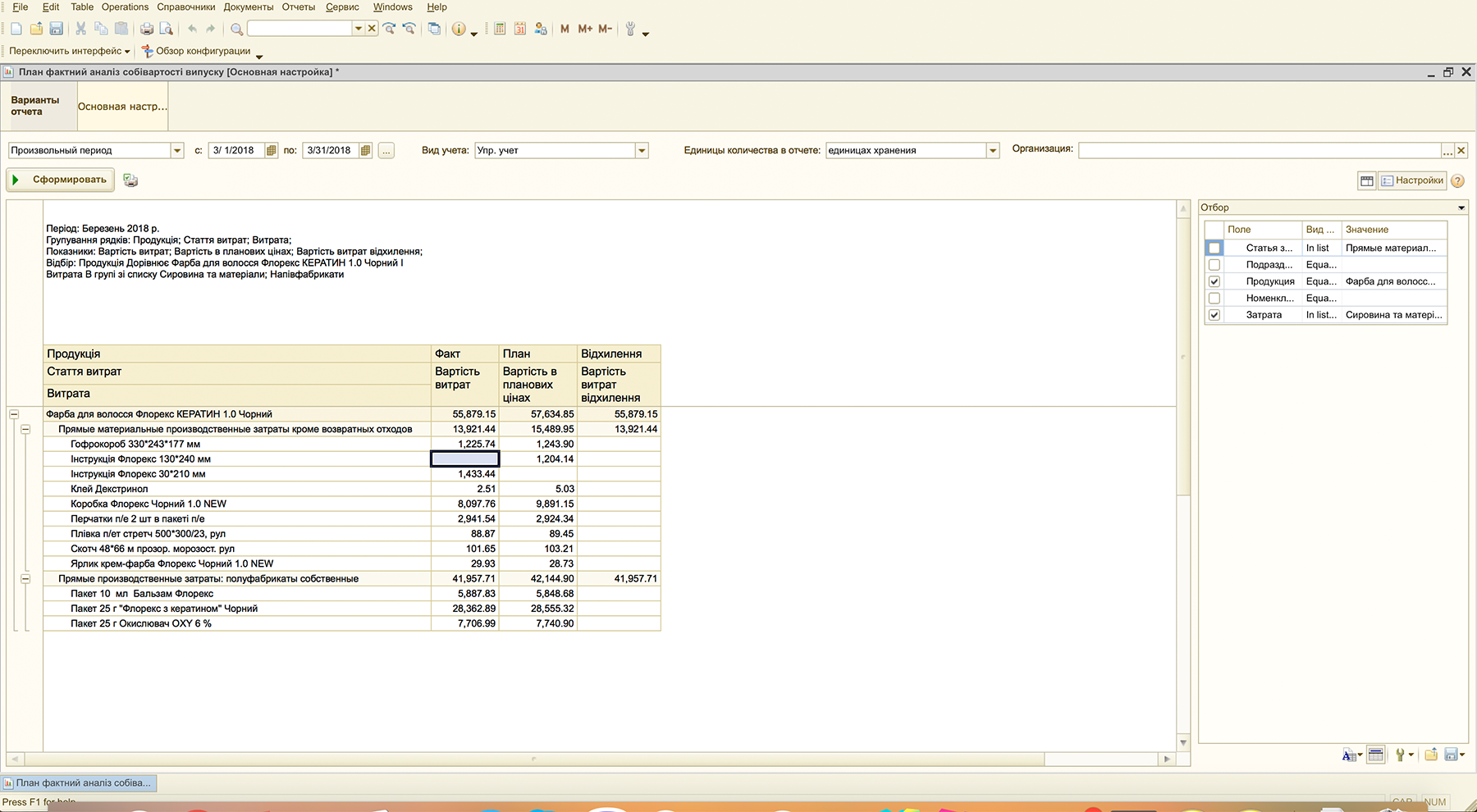 Требуется доработка стандартного отчета УПП "план-фактный анализ себестоимости выпуска".
