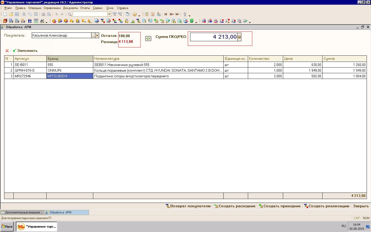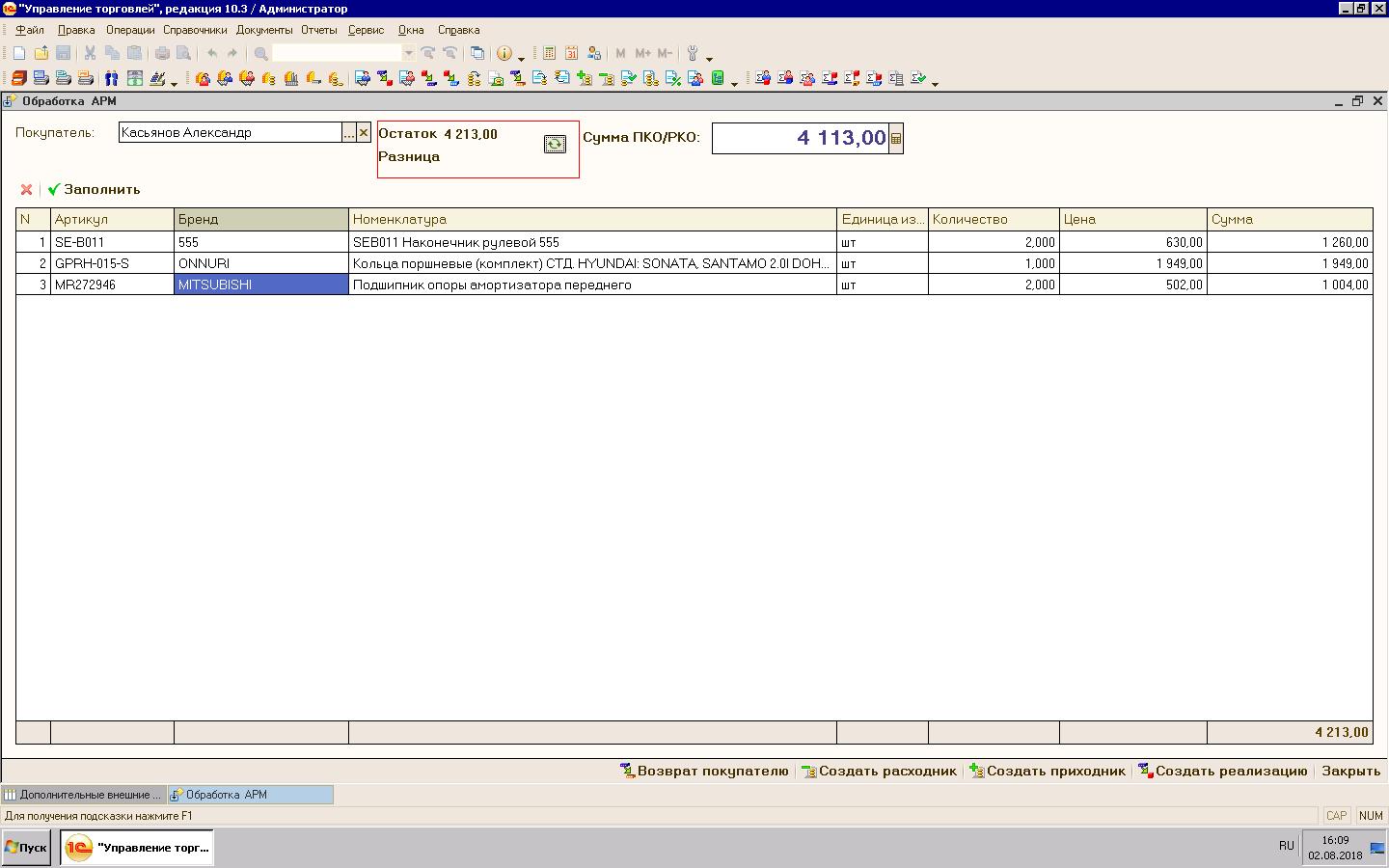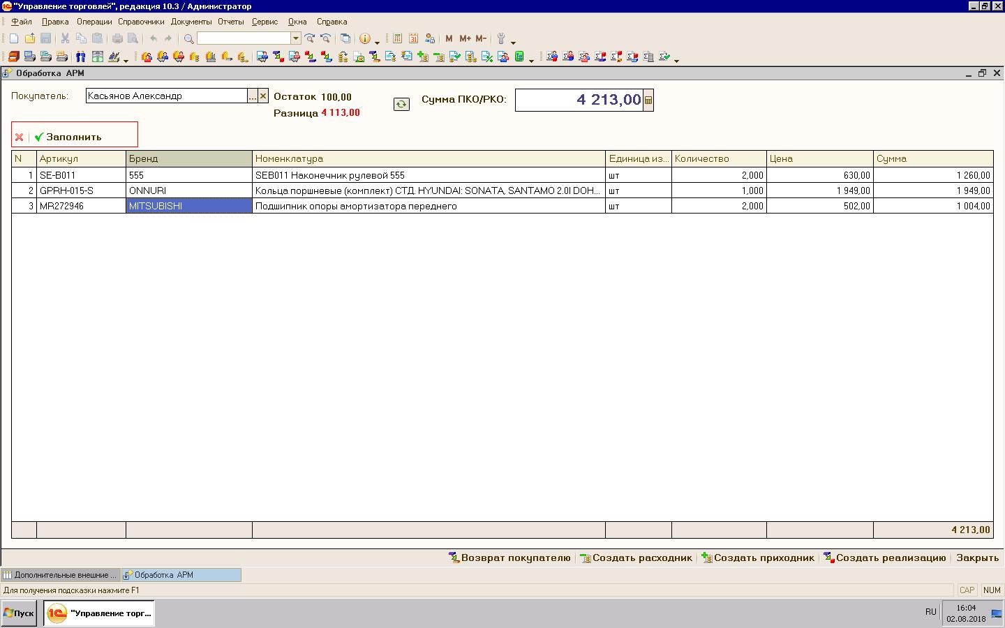 В рабочем месте сведены движения по балансам контрагентов, кнопка для создании приходника с автозаполнением контрагента и суммы, кнопка заполнения поступивших на склад товаров для выбранного контрагента, кнопка создания реализации с автозаполнением, кнопка расходника и кнопка возврата поставщику. (подробнее в скринах)